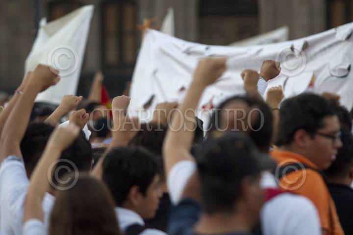 MONTERREY, NUEVO LEÓN, 02OCTUBRE2018.- Estudiantes de diversos centros y miembros del Partido del Trabajo y Morena, realizaron una marcha para concentrarse en la Explanada de los Héroes y conmemorar el movimiento del 68. FOTO: GABRIELA PÉREZ MONTIEL /CUARTOSCURO.COM