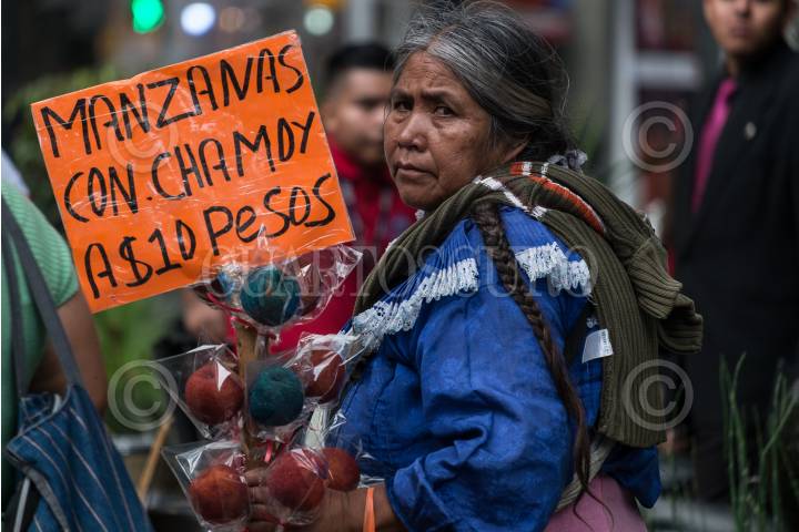 CIUDAD DE MÉXICO, 21JULIO2018.- Una mujer vende manzanas con caramelo en el andador de insurgentes. FOTO: ANDREA MURCIA /CUARTOSCURO.COM