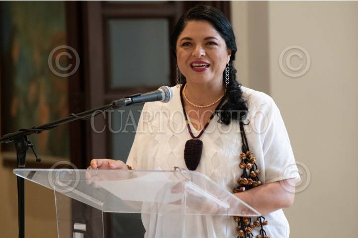 Alejandra Frausto, secretaria de Cultura, durante la inauguración de la exposición y venta "Guatemala en Los Pinos" en el Complejo Culturas Los Pinos.
