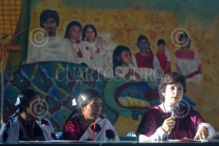 ACTEAL SAN PEDRO CHENALHÓ, CHIAPAS, 20DICIEMBRE2007.- La abogada de derechos humanos Guadalupe Morfín expone la ponencia Derecho y Justicia por los asesinatos contra las mujeres durante el "Encuentro Nacional contra la impunidad" que se celebra en la víspera de la conmemoración del décimo aniversario de la masacre en la que murieron 45 indígenas tsosiles pertenecientes a la organización civil Las Abejas entre ellos hombres, mujeres y niños el 22 de diciembre de 1997. FOTO: MOYSES ZUÑIGA SANTIAGO/CUARTOSCURO.COM