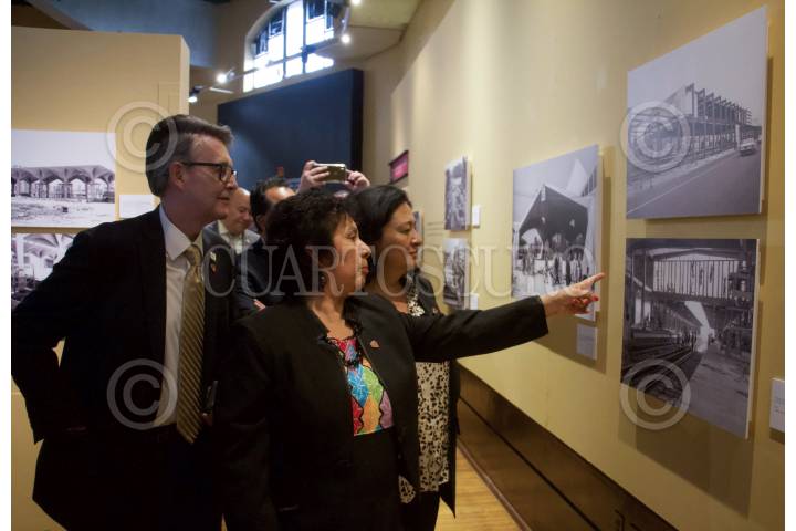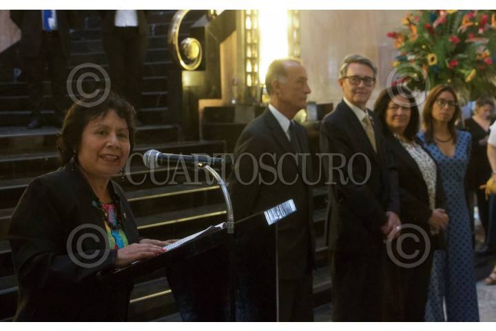 CIUDAD DE MÉXICO, 04SEPTIEMBRE2019.- Lucina Jiménez, Directora General del Instituto Nacional de Bellas Artes y Literatura; Alfonso Suárez del Real, secretario de cultura de la ciudad y Florencia Serrania, Directora del Sistema de Transporte Colectivo Metro, encabezaron la inauguración de la exposición, Metro 50 años, en el Palacio de Bellas artes. FOTO: ROGELIO MORALES /CUARTOSCURO.COM