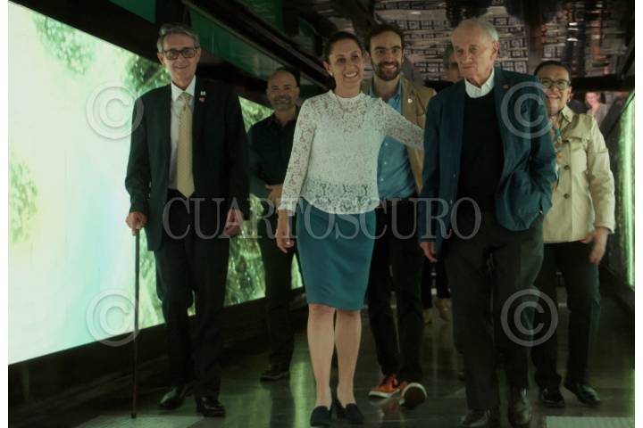 CIUDAD DE MÉXICO, 04SEPTIEMBRE2019.- Alfonso del Real, Pedro Friedeberg y Claudia Sheinbaum, durante la inauguración de la exposición del artista Friedeberg, con motivo del 50 aniversario del Metro. FOTO: ROGELIO MORALES /CUARTOSCURO.COM