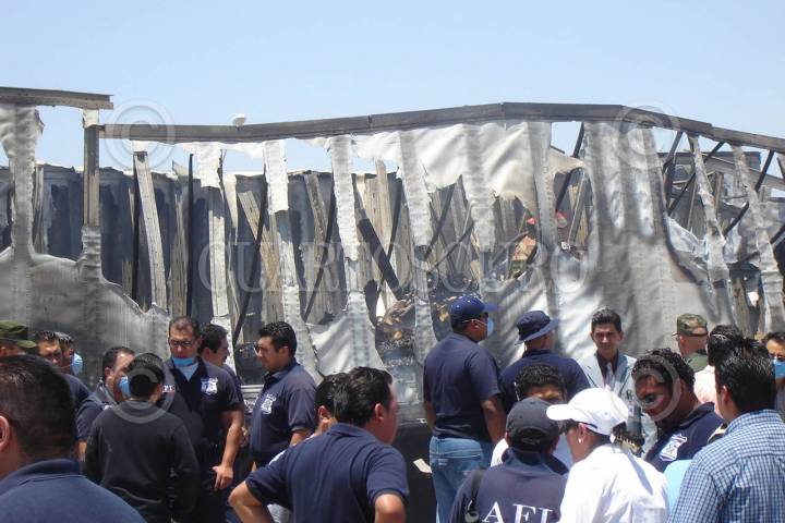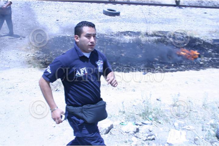 CD. JUAREZ. CHIHUAHUA. 30DEMAYO2006.- Un helicoptero que tripulaban tres agentes de la AFI, se estrelló por una falla mecanica, lo cual produjo una explosión, los tripulantes al intentar planear sobre la mauiladora Philips de el parqe industrial 5, se estrelló en las cajas de carga de de donde transportan los componentes electronicos, la maquila se encuentra junto a las vias de el ferrocarril por lo que dificultó el aceso a los camiones de bomberos y a la prensa. FOTO: Javier Aguilar/Periodico El Norte de Ciudad Juarez/CUARTOSCURO.COM