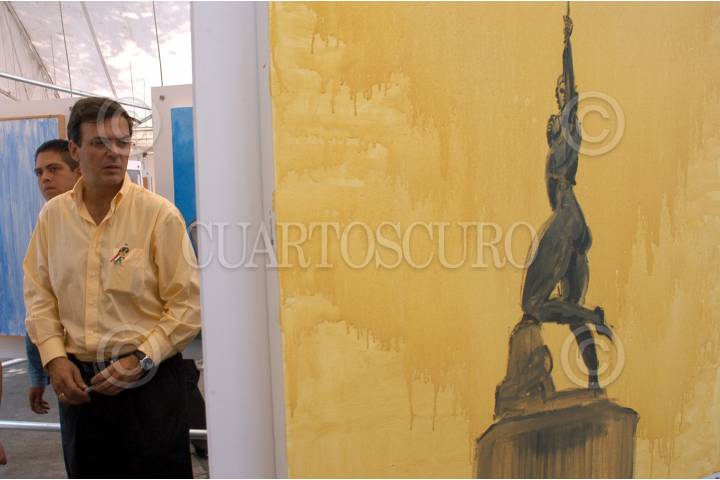 MÉXICO D.F. 12AGOSTO2006.- El candidato electo a jefe de gobierno del D.F. Marcelo Ebrat, duramnte el recorrido en la exposición en honor a la Diana Cazadora, por su reapertura en avenida Reforma. FOTO: Guillermo Perea/ CUARTOSCURO.COM