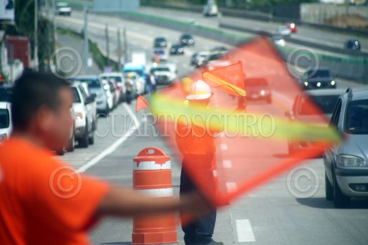 CUERNAVACA, MORELOS, 04DICIEMBRE2018.- Comenzó el retiro de las divisiones de concreto que separan los carriles de alta velocidad de los de baja del Paso Exprés. Cuarenta trabajadores, con ocho plataformas para traslado de las barras y dos grúas, trabajan desde esta mañana en el kilómetro 95. Se espera que dure 15 días la remoción. FOTO: MARGARITO PÉREZ RETANA /CUARTOSCURO.COM
