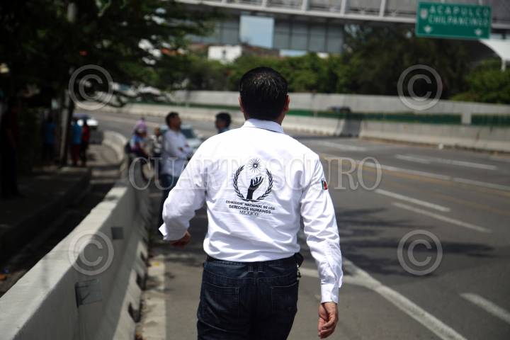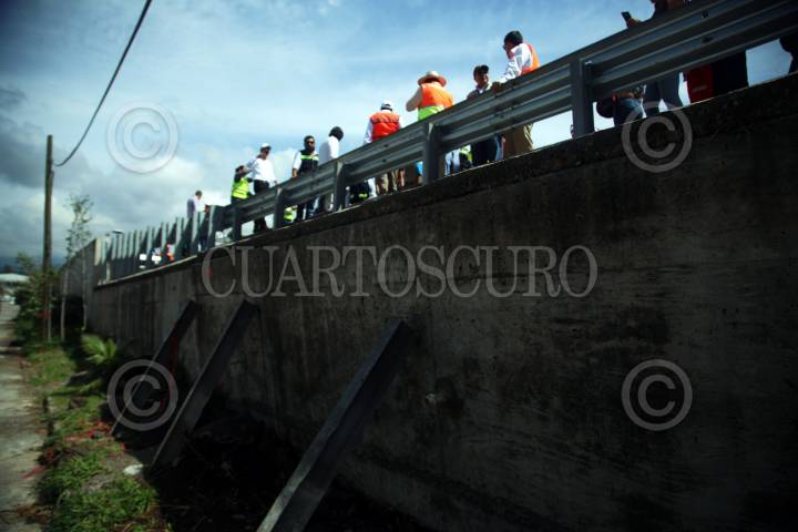 CUERNAVACA, MORELOS, 11JULIO2019. El secretario de Obras Públicas del estado, Fidel Giménez, acompañado del visitador de la Comisión Nacional de los Derechos Humanos, Alfonso Casas, y del director del Centro Morelos de la Secretaría de Comunicaciones y Transportes, Héctor Armando Castañeda, recorre varios puntos del Paso Exprés, después de que siguen presentándose fallas en la vía que fue ampliada hace dos años. FOTO: MARGARITO PÉREZ RETANA /CUARTOSCURO.COM