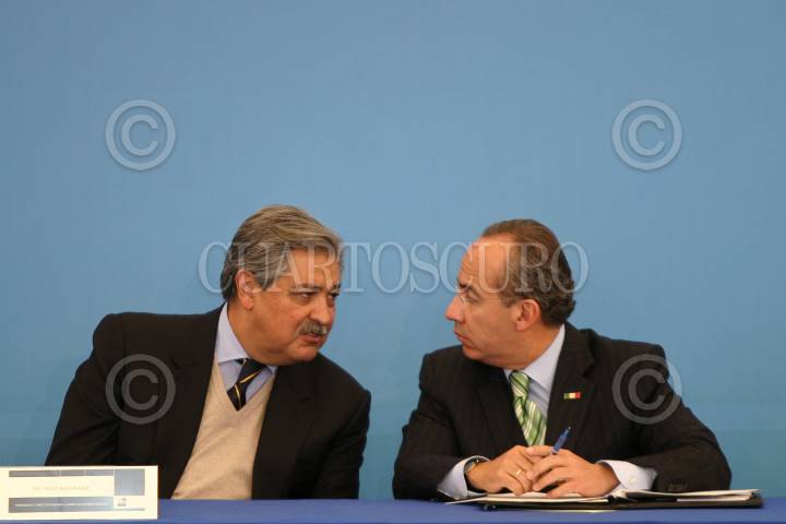 MÉXICO, D.F., 04FEBRERO2009.- Rodolfo Elizondo, secretario de Turismo conversa con el presidente Felipe Calderón durante el acto inaugural del Centro de Excelencia American Express ubicado en Tecnopaque. FOTO: RODOLFO ANGULO/CUARTOSCURO.COM