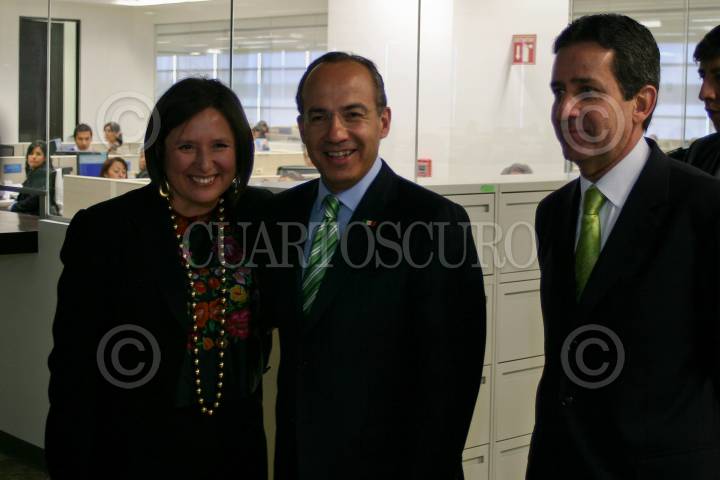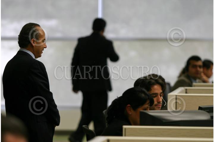 MÉXICO, D.F., 04FEBRERO2009.- El presidente Felipe Calderón realizo un recorrido por el Centro de Excelencia American Express después de haber sido inaugurado en el acto inaugural en Tecnopaque. FOTO: RODOLFO ANGULO/CUARTOSCURO.COM