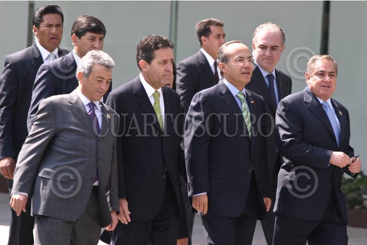 MÉXICO, D.F., 04FEBRERO2009.- Marcos Shabot Zonana, desarrollador de Tecnoparque; Helio Magalhares, presidente y director general de American Express México y el presidente Felipe Calderón a su llegada al evento en donde se inauguro el Centro de Excelencia American Express ubicado en Tecnopaque. FOTO: RODOLFO ANGULO/CUARTOSCURO.COM