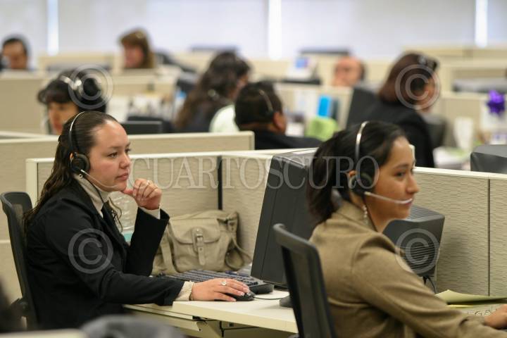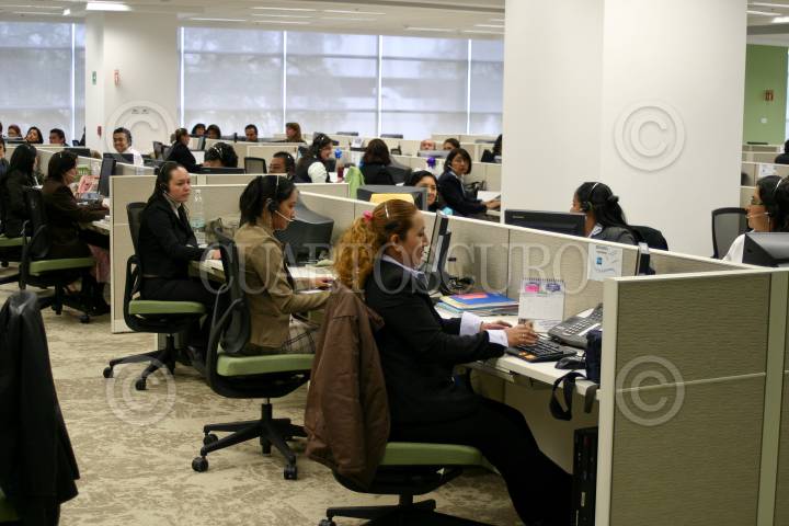 MÉXICO, D.F., 04FEBRERO2009.- Trabajadores de telemarketing laboran en el Centro de Excelencia American Express que se ubica en Tecnopaque. FOTO: RODOLFO ANGULO/CUARTOSCURO.COM