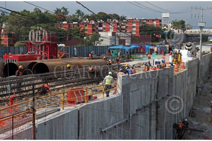CUERNAVACA, MORELOS, 24AGOSTO2017.- Continúan los trabajos de remediación en el Paso Exprés; la obra denominada Puente de Santo Cristo es realizada por la empresa Cimentaciones Mexicanas. El socavón que se formó el pasado 12 de julio, en el cual cayo un vehículo y murieron dos hombres, ha sido cubierto y trabajadores construyen el armazón de los pilotes que soportaron el puente que se proyecta construir. FOTO: MARGARITO PÉREZ RETANA/CUARTOSCURO.COM