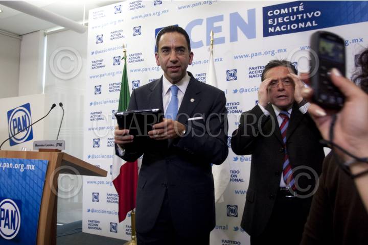 MÉXICO D.F., 19MARZO2012.- Javier Lozano Alarcón vocero del Partido Acción Nacional y exsecretario del trabajo culpo al candidato del PRI a la presidencia al propio partido de impedir la reforma laboral. FOTO: GUILLERMO PEREA /CUARTOSCURO.COM
