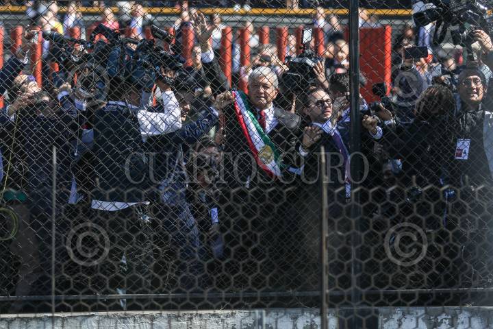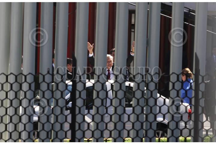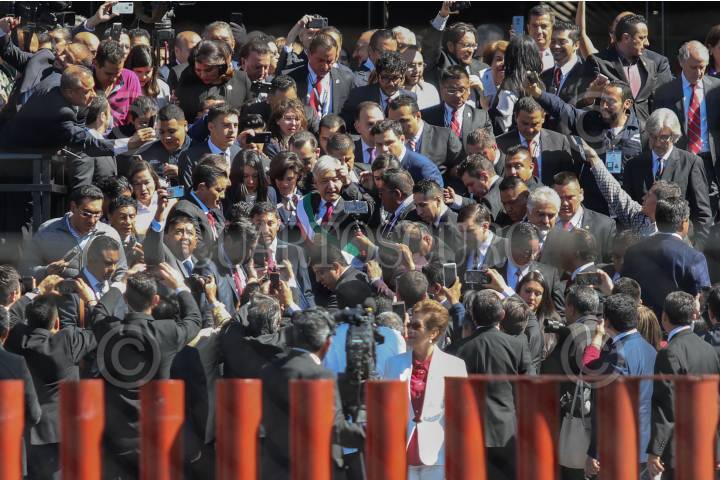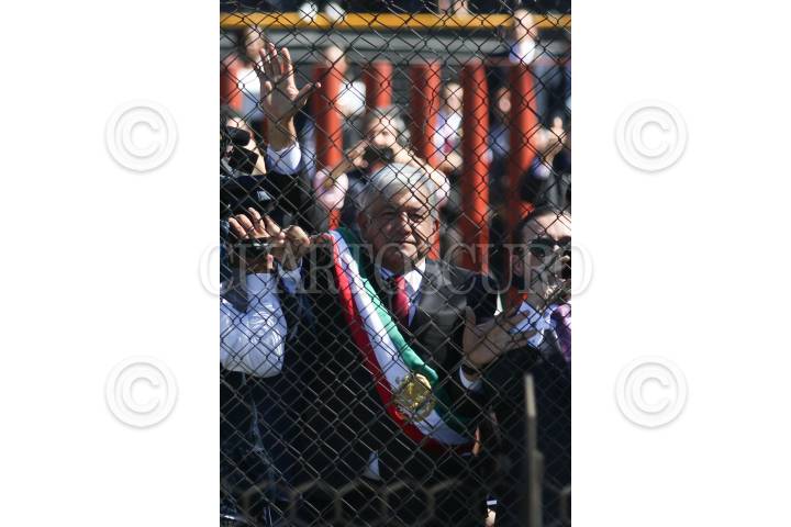 CIUDAD DE MÉXICO, 01DICIEMBRE2018.- Andrés Manuel López Obrador, presidente Constitucional de los Estados Unidos mexicanos, durante su salida del recinto del Palacio de San Lázaro, en donde aprovechó para saludar desde la división de las vías del metro, a las personas que se reunieron del otro lado de la avenida Congreso para felicitarlo. FOTO: MARIO JASSO /CUARTOSCURO.COM