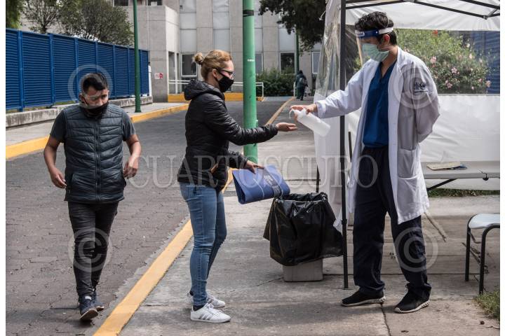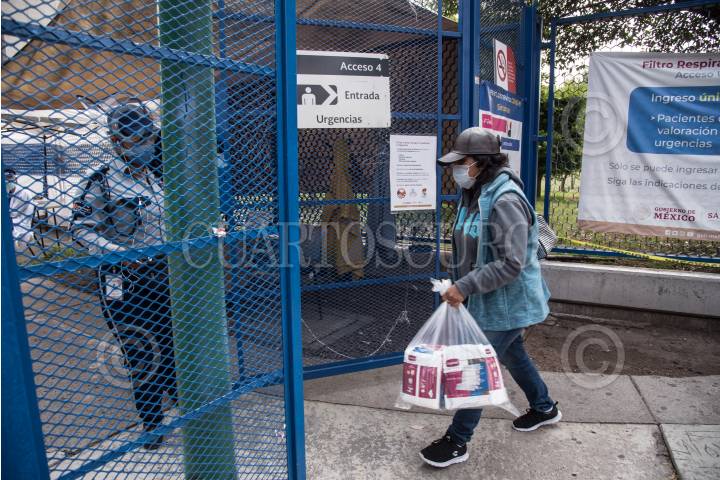 Personas ingresan a las instalaciones del Hospital Juárez de Mexico para conocer el informe clínico de sus familiares internados por covid-19.