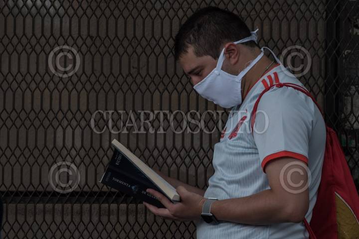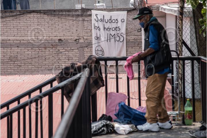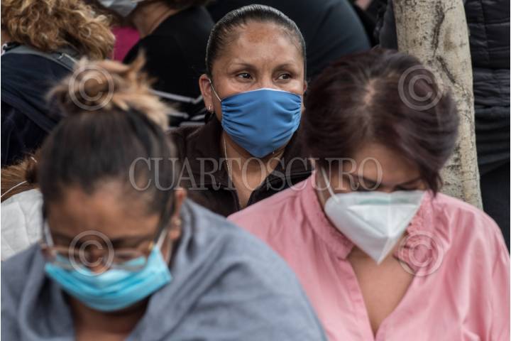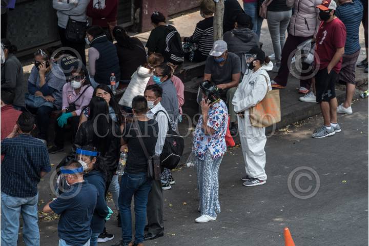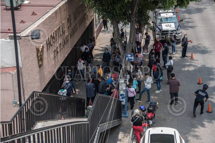 Personas permanecen en las inmediaciones Hospital de Infectología La Raza para esperar noticias sobre sus familiares internados por covid-19.