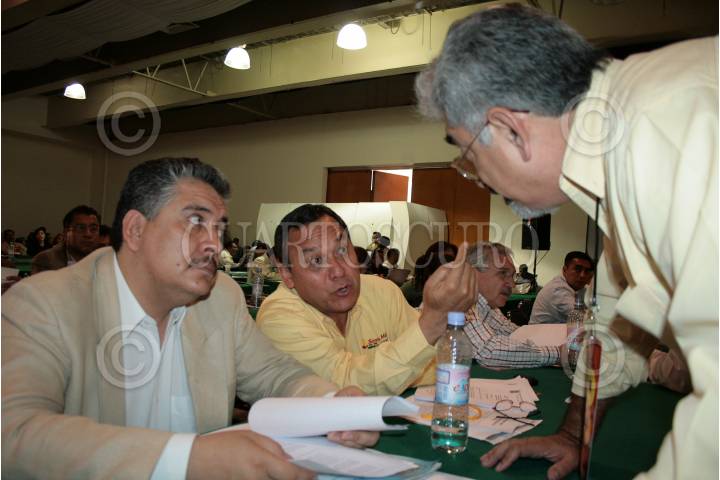 MÉXICO, D.F., 6ABRIL2008.- Guadalupe Acosta Secretario General del PRD, Jesus Zambrano candidato a la presidencia del PRD capitalino y Camilo Valenzuela en el noveno pleno extraordinario del VI Consejo Nacional del PRD, quien externo su apoyo a la no privatisacion de Pemex FOTO: RICARDO CASTELAN /CUARTOSCURO.COM.