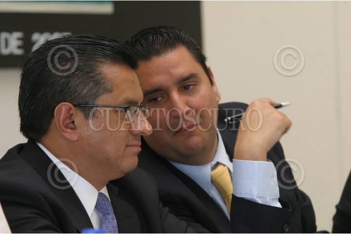 MEXICO, D.F. 28MARZO2007.- Joel Ortega, secretario de Seguridad Pública del D.F. conversa con el diputado Andrés Lozano Lozano, durante el foro sobren la extición de dominio de los bienes propiedad de crimen organizado y su aplicación en México con la comisión de Seguridad Pública de la cámara de diputados. FOTO: NELLY SALAS/CUARTOSCURO.COM