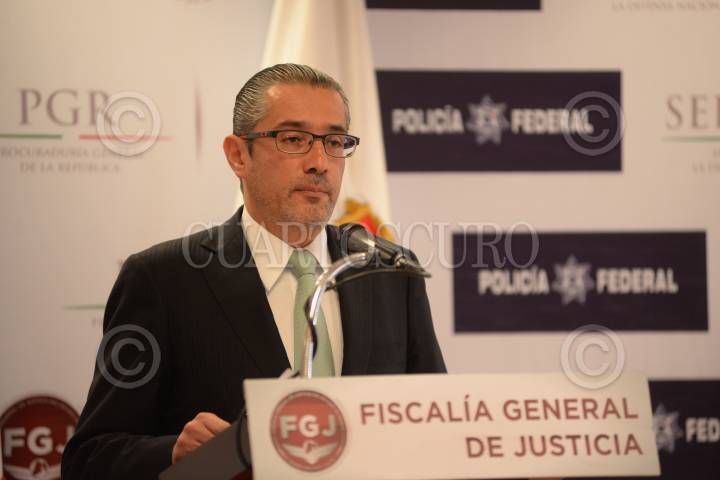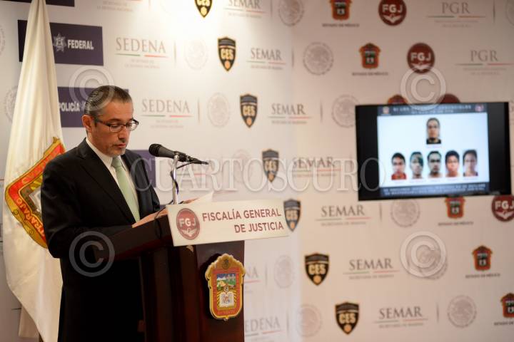 TOLUCA, ESTADO SE MÉXICO, 30JUNIO2017.- El titular de la Fiscalía General de Justicia del Estado de México, Alejandro Gómez Sánchez, informó sobre la detención de seis personas en Nezahualcóyotl presuntos extorsionadores. FOTO: ARTEMIO GUERRA BAZ /CUARTOSCURO.COM