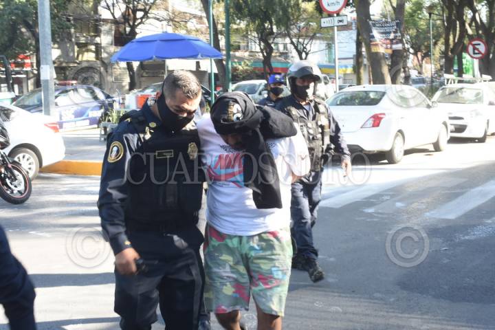 Fue detenido "El Chato" y otros sujetos tras ser señalado por comerciantes como extorsionadores de la zona del Centro Histórico.