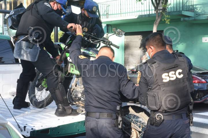 Tres sujetos fueron detenidos en la colonia Morelos por su probable participación en el ataque a balazos a una pareja de comerciantes en el Eje 1 Norte y Florida, a los presuntos se les aseguró una metralleta y una motocicleta.