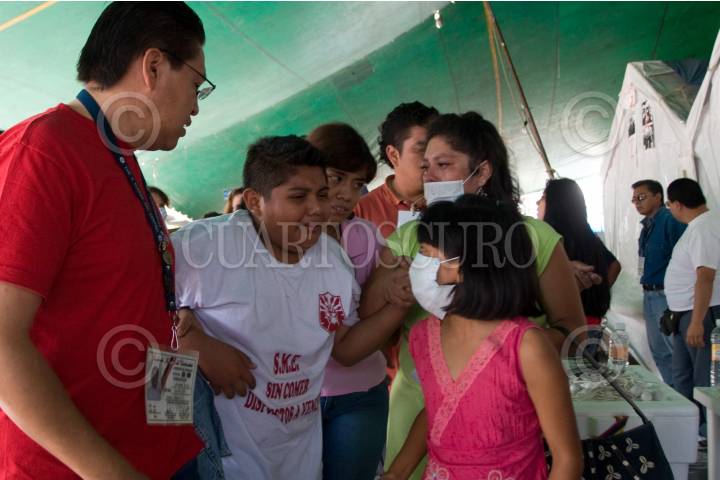 MÉXICO D.F., 19JULIO2010.- Familiares de Miguel Ángel Ibarra uno de los extrabajadores de la extinta Compañía de Luz y Fuerza del Centro, que se mantiene en huelga de hambre, lloran cuando él es atendido después de haber sufrido un desmayo durante la lectura a un comunicado donde solicitan que sean recibidos por el representante del ejecutivo y donde se señaló al gobierno federal como responsable de lo que le pueda suceder a sus compañeros en huelga de hambre. FOTO: GUILLERMO PEREA/CUARTOSCURO.COM