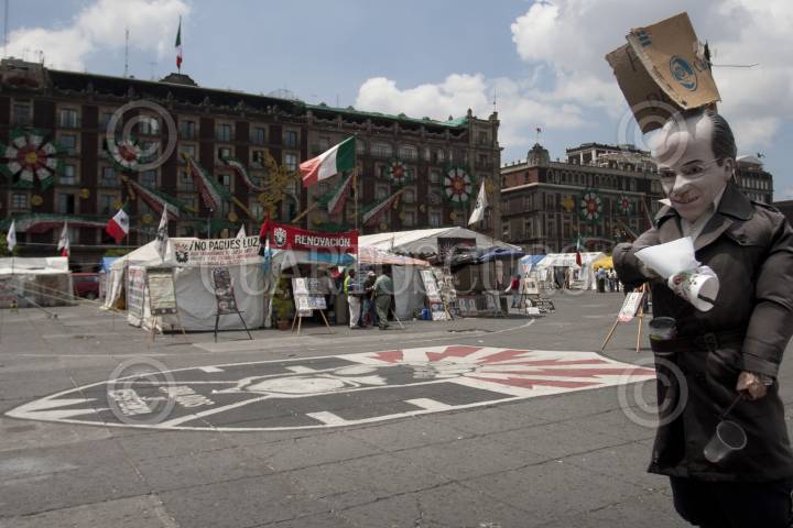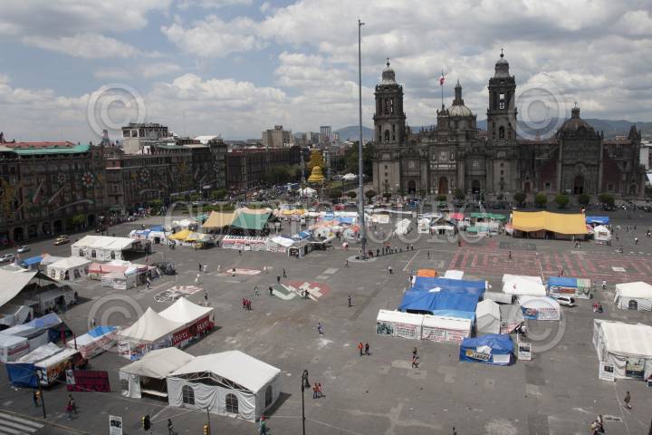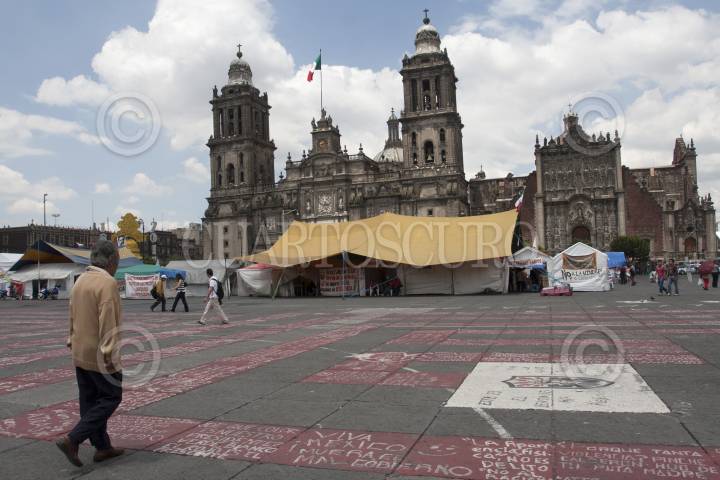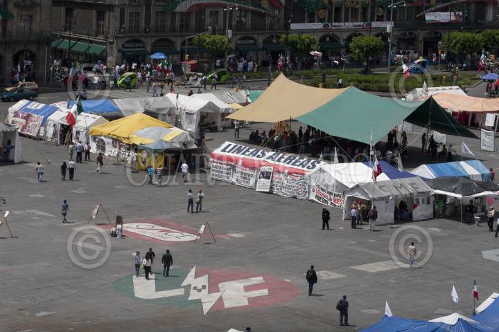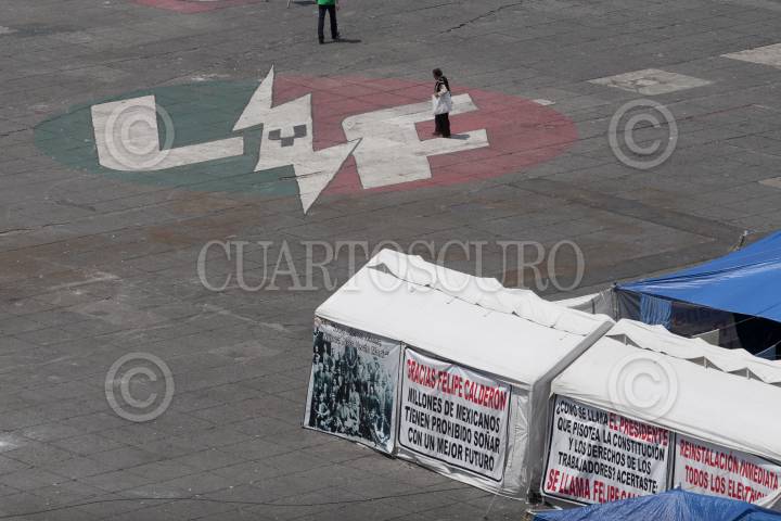 MÉXICO, D.F., 12SEPTIEMBRE2011.- Pese al anuncio del medio día de ayer del retiro del campamento que mantienen los extrabajadores de Luz y Fuerza pertenecientes al Sindicato Mexicano de Electricistas (SME) aun se mantienen las carpas en la plancha del Zócalo. FOTO: GUILLERMO PEREA/CUARTOSCURO.COM