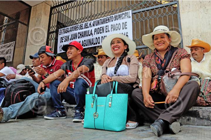 TUXTLA GUTIERREZ, CHIAPAS, 25ABRIL2017.- 77 Extrabajadores del ayuntamiento del municipio de San Juan Chamula, Chiapas, iniciaron un plantón indefinido en las afueras del H. Congreso del Estado en la capital chiapaneca, para exigir el pago de 13 quincenas de salario que les adeudan, así como los aguinaldos correspondientes a los años 2015 y 2016. FOTO. JESUS GARCIA/CUARTOSCURO.COM