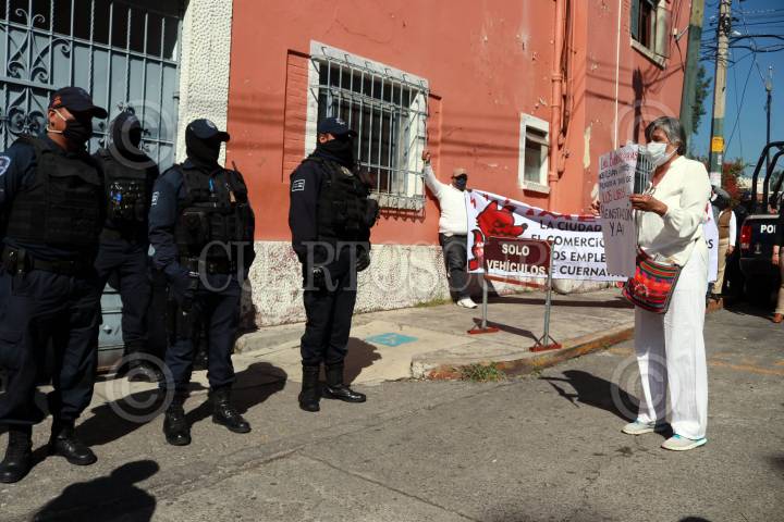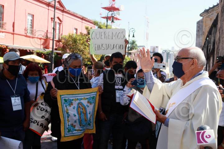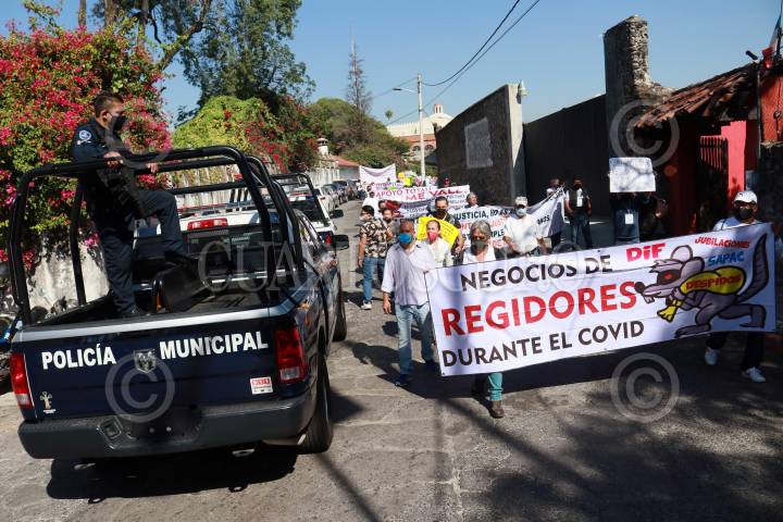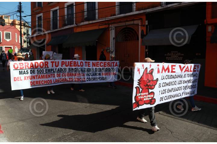 Ex trabajadores del ayuntamiento de Cuernavaca marchan para exigir su reinstalación.