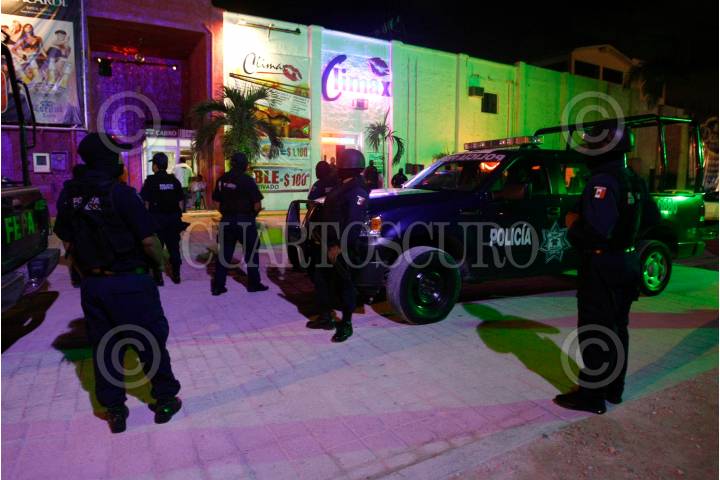CANCÚN, QUINTANA ROO, 07AGOSTO2009.- Policias estatales de élite y agentes federales realizaron esta madrugada una inspección a los centros nocturnos que se localizan en la zona de tolerancia de Cancún conocida como ”el 21”, en el operativo se detuvo a seis mujeres extranjeras porque no pudieron acreditar su estancia en el pais o no mostraron permisos para trabajar. FOTO: AMARANTA PRIETO/CUARTOSCURO.COM