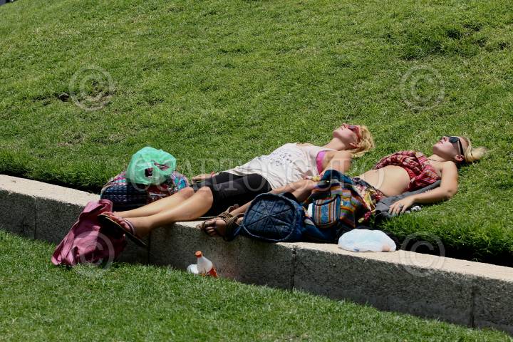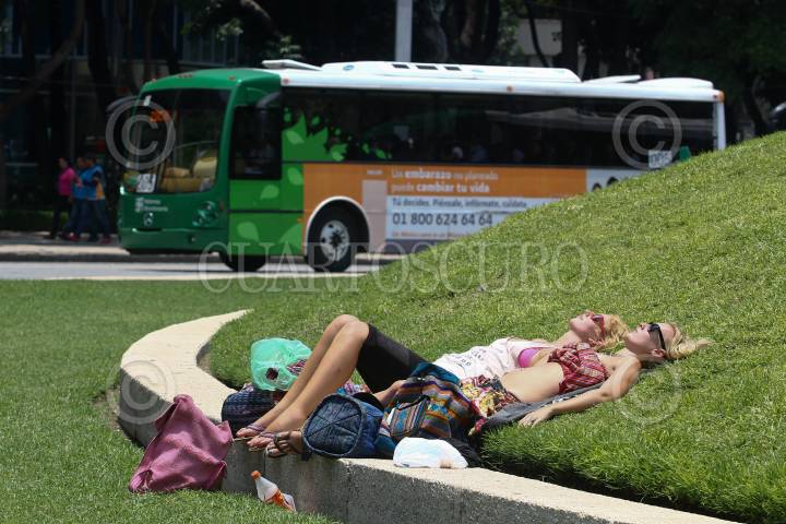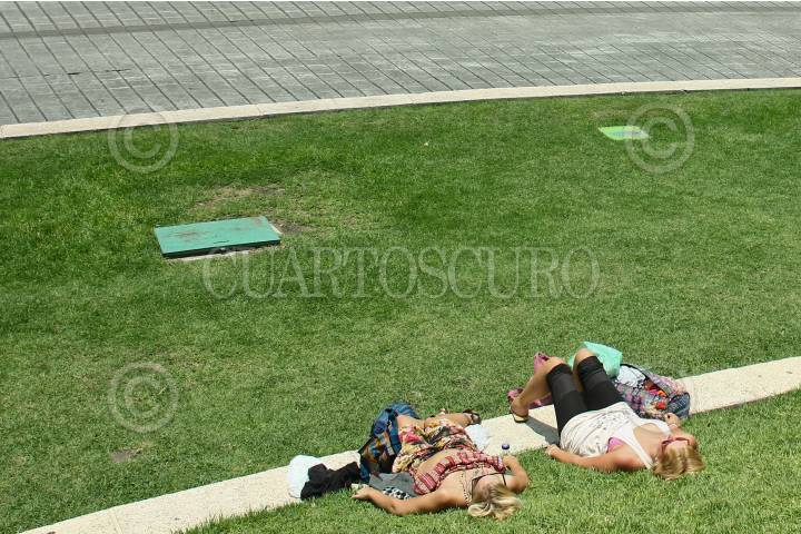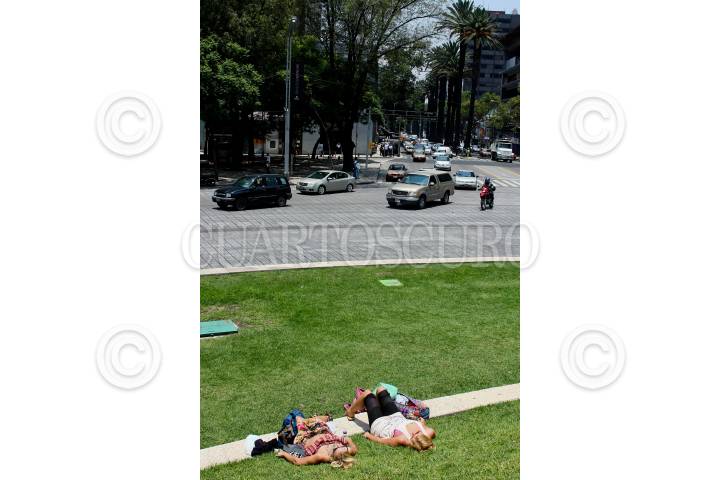 MÉXICO, D.F., 19JULIO2011.- Dos turistas extranjeras disfrutan su estancia en la ciudad asoleándose en la glorieta del Ángel de la Independencia. FOTO: SAÚL LÓPEZ/CUARTOSCURO.COM