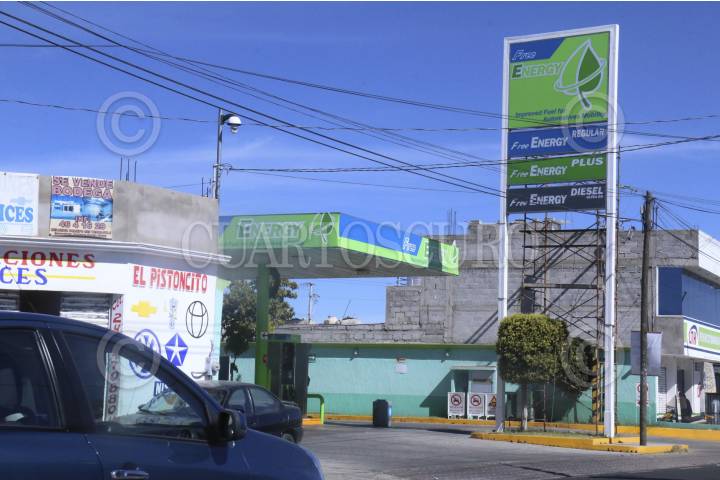 TLAXCALA, TLAXCALA, 29DICIEMBRE2016.- Nadie sabe de donde vienen, solo que son más modernas y se nota que sus equipos son diferentes, en el barrio de Tecolutla del municipio de Juan Cuamatzi ya despacha la gasolinera ENERGY cuyo emblema es una hoja verde. Los despachadores no saben nada, su publicidad menciona la marca ENERGY Regular, ENERGY Plus y ENERGY Diesel. Nadie sabe de donde vienen, quienes son sus propietarios, la forma en como se licitaron las concesiones y en el gobierno estatal y federal se guarda total hermetismo, más ahora que esta a horas el cambio de gobierno. Se espera que, para enero de 2017, el país esté lleno de gasolineras extranjeras que competirán con Pemex por el mercado mexicano. FOTO: JORGE LEZAMA /CUARTOSCURO.COM