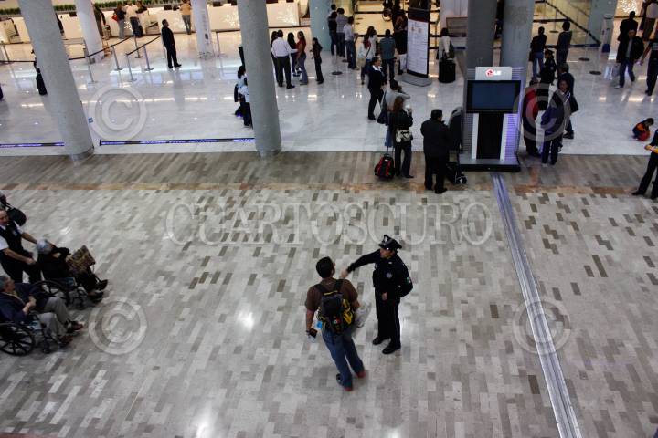 MÉXICO, D.F., 08FEBRERO2009.- En el aeropuerto Internacional de la Ciudad de México se incrementó la seguridad de 400 a 500 los elementos que vigilan el interior del aeropuerto y su periferia, debido a los asaltos en contra de visitantes extranjeros. FOTO: CUARTOSCURO.COM