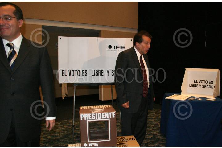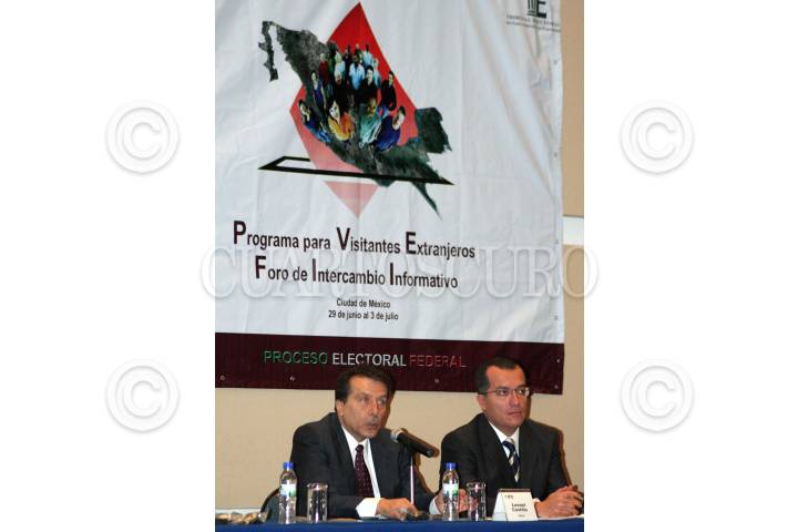 MÈXICO, D.F. 29JUNIO2006.- Luis Carlos Ugalde, presidente del Instituto Federal Electoral y Leonel Castillo, magistrdo presidente de el TEPJF, inauguraron el Foro de intercambio informativo para visitantes extranjeros. FOTO: Paola Hidalgo/CUARTOSCURO.COM