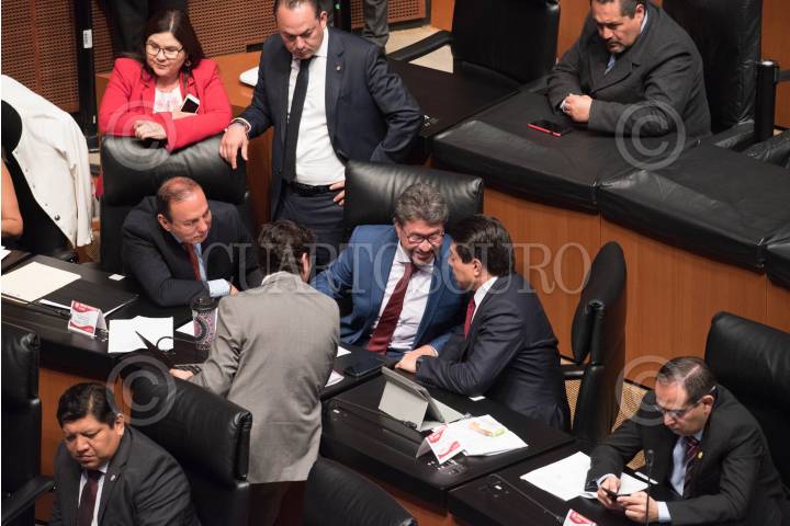 CIUDAD DE MÉXICO, 12JUNIO2019.- Senadores y Diputados del grupo parlamentario de Morena, durante la Sesión de la Comisión Permanente, en la que se aprobó modificar la convocatoria a celebrar un Segundo Periodo de sesiones extraordinarias. FOTO: MARIO JASSO /CUARTOSCURO.COM