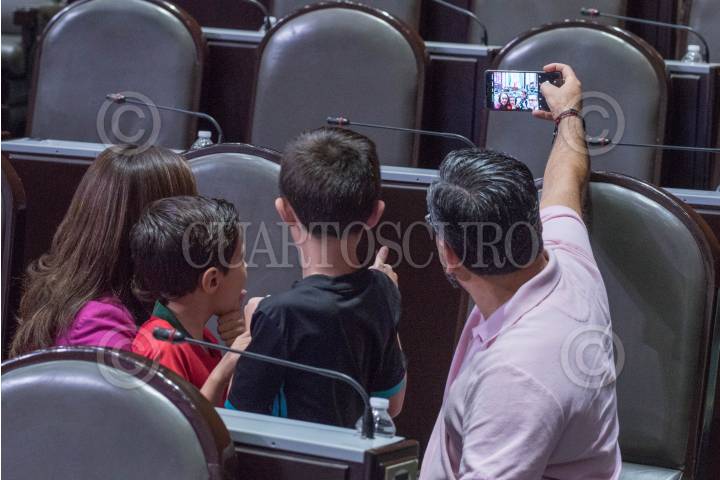 CIUDAD DE MÉXICO, 28JUNIO2019.- Martha Elisa González Estrada, diputada del PAN, se toma una fotografía con su familia, durante la Sesión Extraordinaria del Segundo Receso del Primer Año de Ejercicio de la LXIV Legislatura. FOTO: MARIO JASSO /CUARTOSCURO.COM