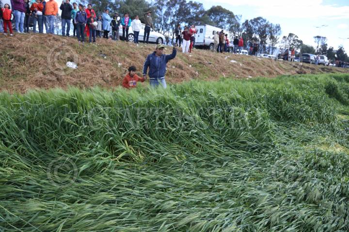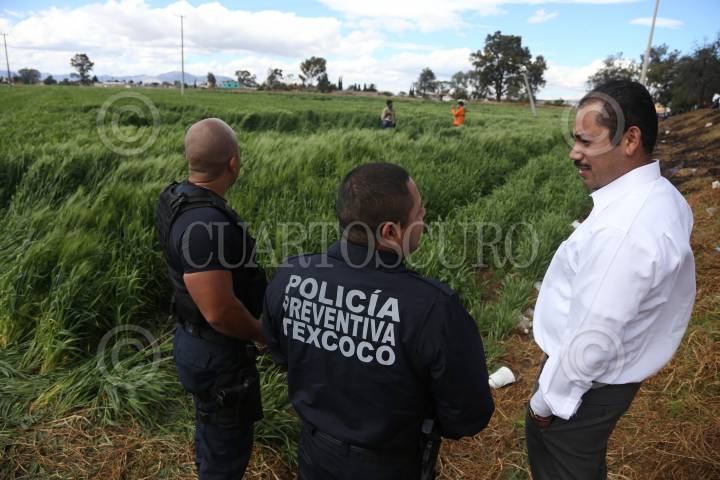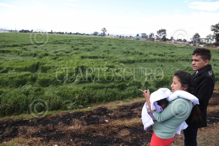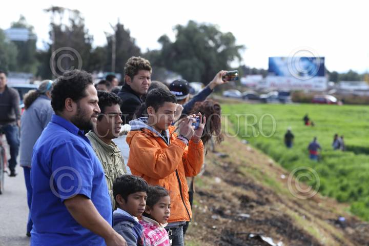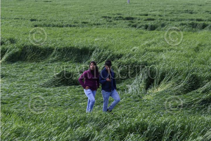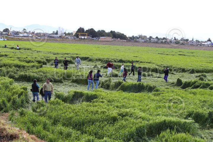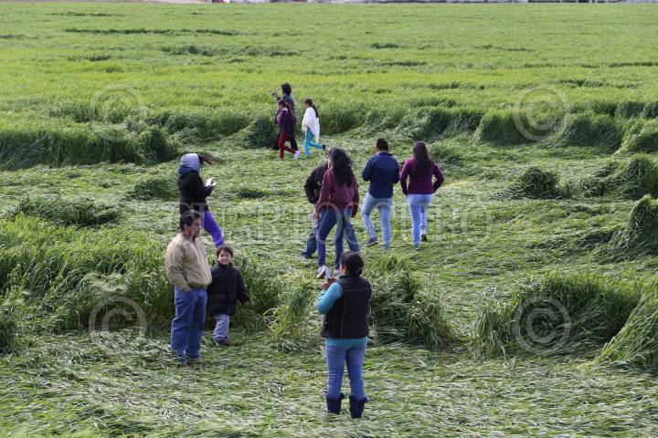 TEXCOCO, ESTADO DE MÉXICO, 25DICIEMBRE2014.- Habitantes de las comunidades de Tocuila, Magdalena Panoaya, San Felipe y automovilistas observaron figuras extrañas que se registraron en campos de cultivos en el kilometro 23 de la carretera Texcoco-Lecheria. Algunos habitantes aseguraron que dichas figuras fueron hechas por una nave extraterrestre que descendió en la madrugada. FOTO: SAÚL LÓPEZ /CUARTOSCURO.COM