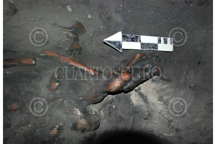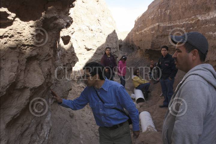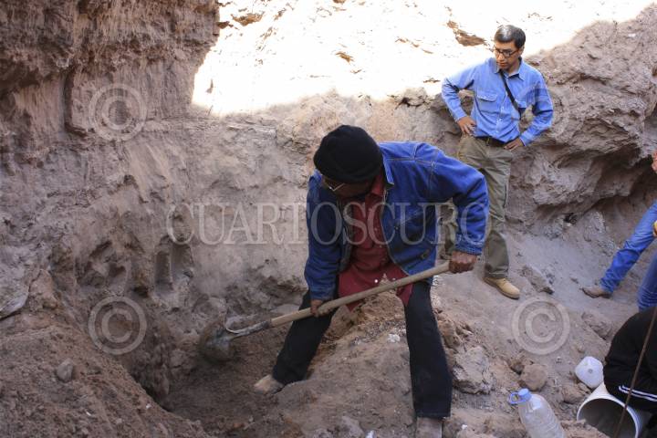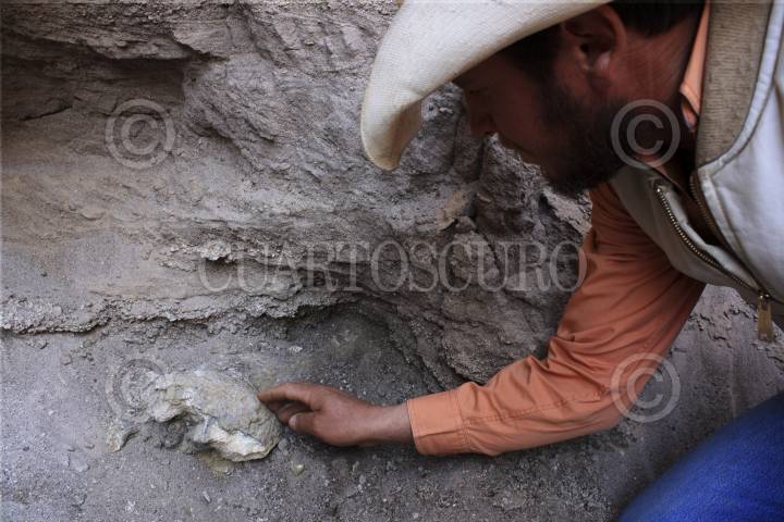 CIUDAD JUÁREZ, CHIHUAHUA, 29ENERO2012.-Trabajadores de la Junta de Aguas que llevaban a cabo excavaciones para introducir tubería de agua potable, realizaron el descubrimiento de huesos fosilizados de lo que sería un mamut. Parte de la estructura ósea fue localizada a varios metros de profundidad, luego de llevarse a cabo obras de colocación de tubería. Según los mismos trabajadores que realizaron el descubrimiento, los huesos son de grandes dimensiones, por lo que expertos antropólogos fueron llamados para que realicen a cabo las pruebas. FOTO: NACHO RUIZ/CUARTOSCURO.COM