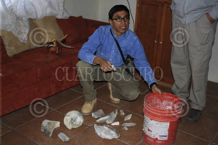 MONCLOVA, COAHUILA, 04MAYO2010.- Un conjunto de restos óseos petrificados, encontrados en la llamada “Cueva del Indio”, localizada en la colonia Bosques, de la ciudad de Monclova, Coahuila, podrían pertenecer a alguna especie de animal prehistórico, probablemente un dinosaurio, de acuerdo con la inspección realizada por especialistas del Instituto Nacional de Antropología e Historia FOTO: INAH/CUARTOSCURO.COM