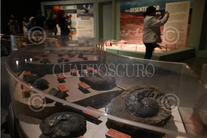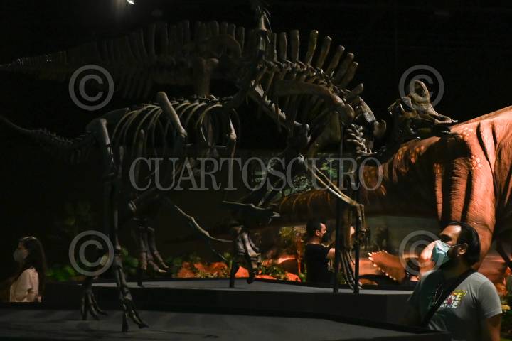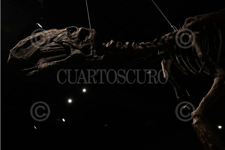 El fósil de un dinosauriose encuentra expuesto en el Parque Bicentenario.