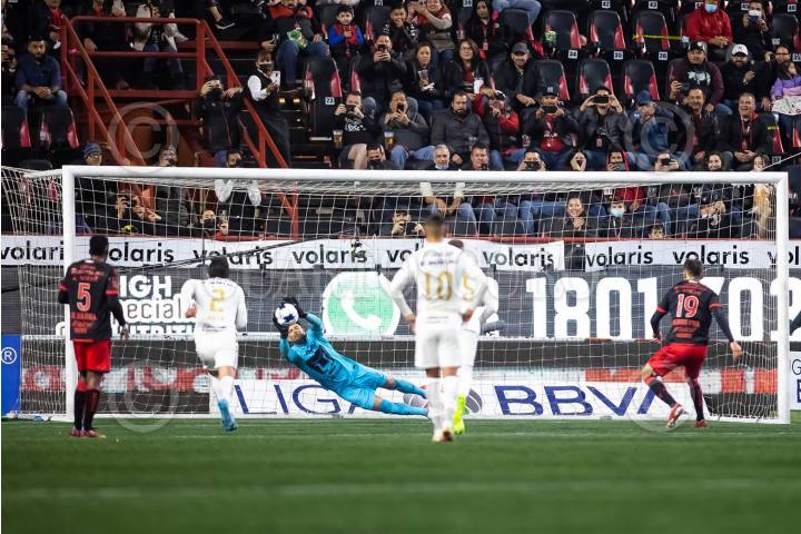 El portero Alfredo Talavera (Pumas) ataja un penal durante el encuentro ante el Tijuana.