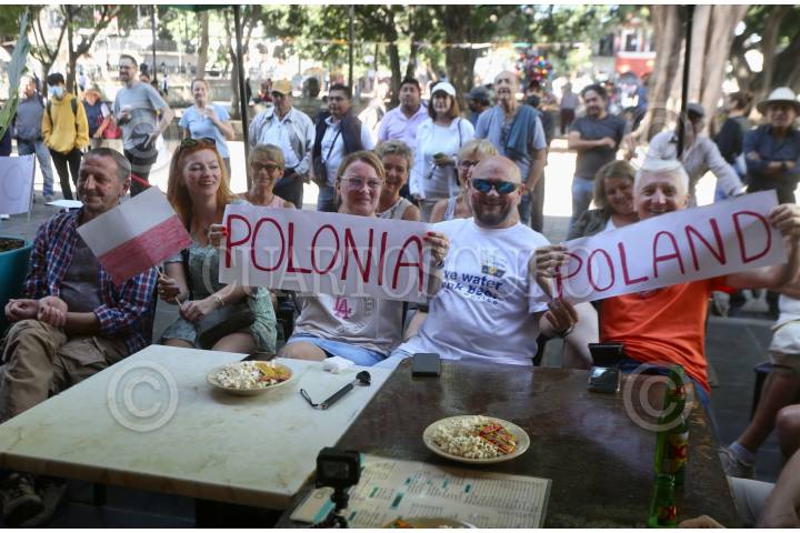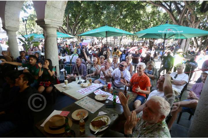 Turistas y locales observaron el partido de la Selección Mexicana vs Polonia en los restaurantes del zócalo de Oaxaca.