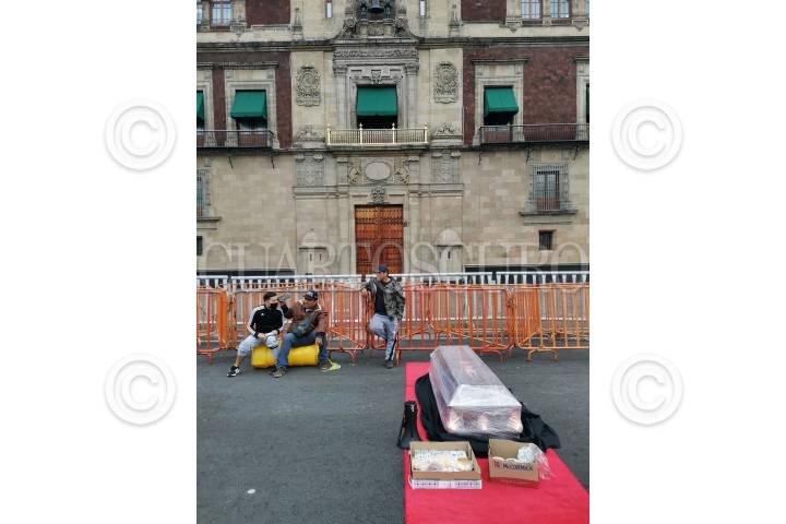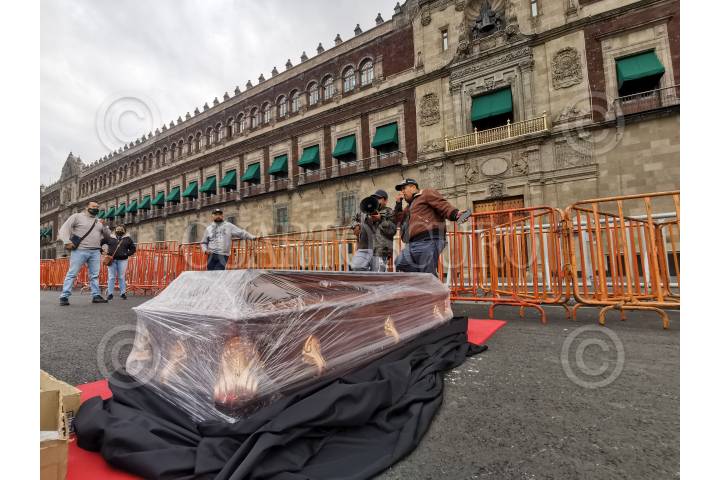 Con ataúd, el cual supuestamente contenía el cuerpo de Don Poncho, manifestantes exigieron frente a Palacio Nacional la liberación de un hombre quien esta recluido en el penal de Jilotepec. Afirmaron que persona fallecida era un compañero de lucha cuyo último deseo era participar en una protesta.