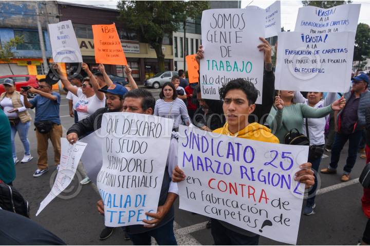 Habitantes de Ecatepec que se dedican a diversas actividades se manifestaron en la FGJEM denunciando la fabricación de delitos y corrupción en la Fiscalía Regional.