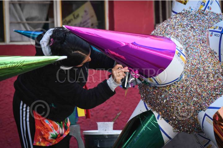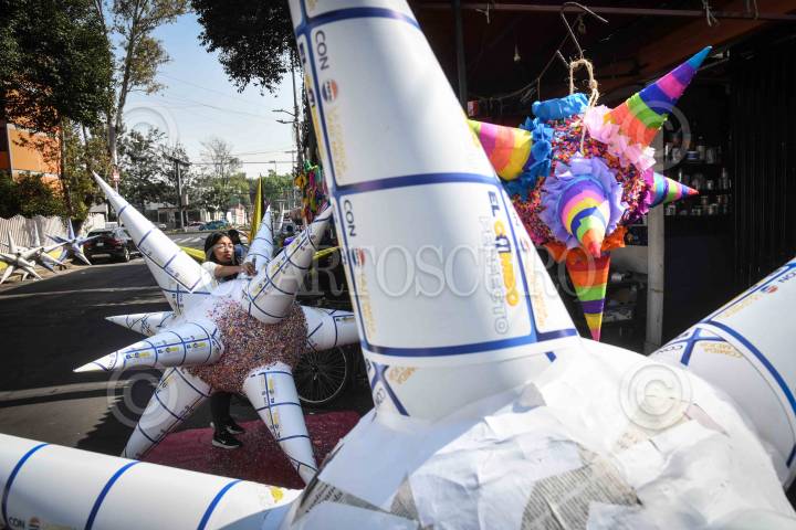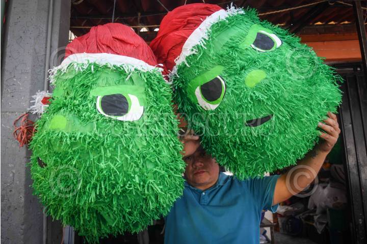 CIUDAD DE MÉXICO, 12DICIEMBRE2024.- Trabajadores del "Taller Alcaraz" ubicado en la colonia Pueblo de la Magdalena Mixihuca, multiplican esfuerzos para la elaboración de las tradicionales piñatas ante la alta demanda de pedidos por las fiestas decembrinas. Los precios van desde los 300 a los 1500 pesos que dependen del tamaño y forma de la piñata. FOTO: MARIO JASSO/CUARTOSCURO.COM