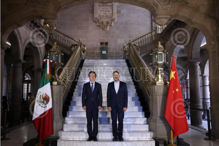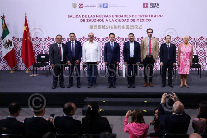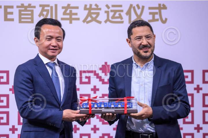 CIUDAD DE MÉXICO, 09SEPTIEMBRE2023.- Martí Batres Guadarrama, jefe de gobierno de la Ciudad de México, en compañía del embajador de China en Mexico, Zheng Run, dieron el banderazo de salida de los primeros nueve trenes ensamblados por la empresa china CRRC. FOTO: GOBIERNO CDMX/CUARTOSCURO.COM