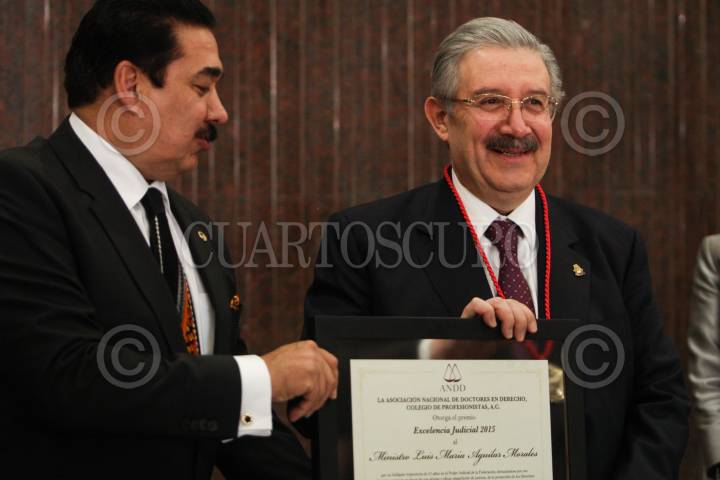 MÉXICO, D.F., 18NOVIEMBRE2015.- La Asociación Nacional de Doctores en Derecho entregó el premio a la “Excelencia Judicial 2015” al ministro presidente de la Suprema Corte de Justicia Nacianal Luis María Aguilar Morales por su trayectoria en materia judicial en el país, en las instalaciones del Centro Libanes FOTO: ISABEL MATEOS /CUARTOSCURO.COM