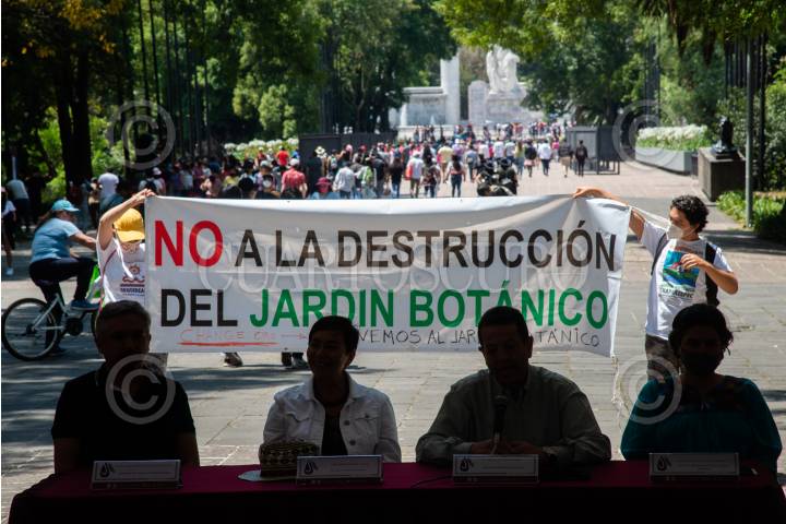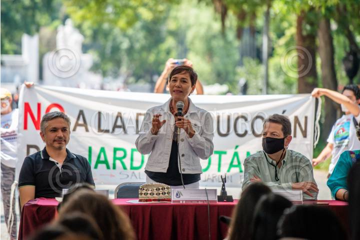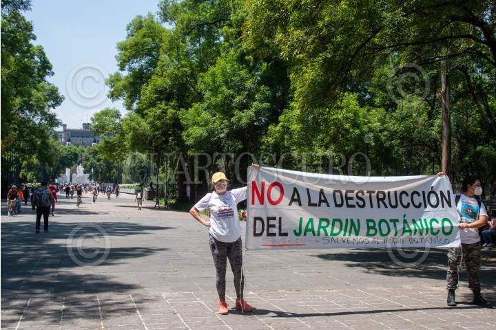 Personas se manifestaron en contra de la destrucción del Jardín Botánico durante el evento organizado por la Secretaría del Medio Ambiente, en el Bosque de Chapultepec.
