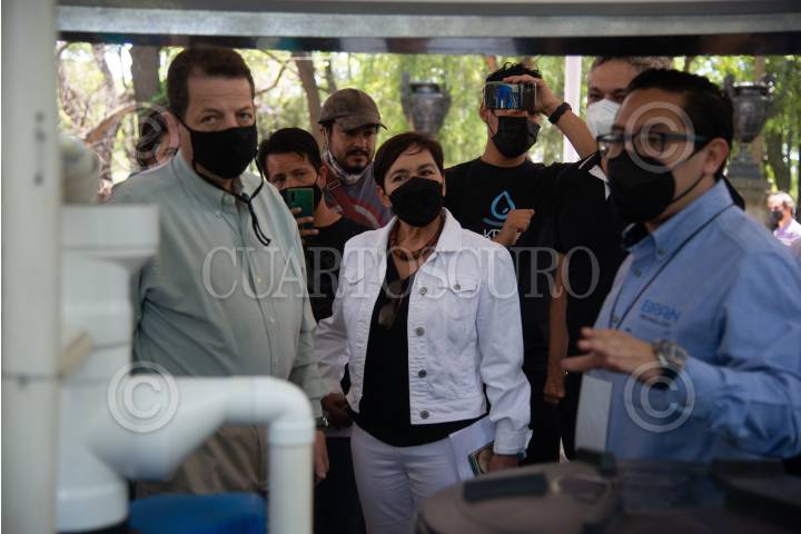Marina Robles García, secretaria del Medio Ambiente; Fadlala Akabani Heinde, secretario de Desarrollo Económico, recorrieron la Primera Feria de Ecotecnias para la Cosecha de Lluvia.