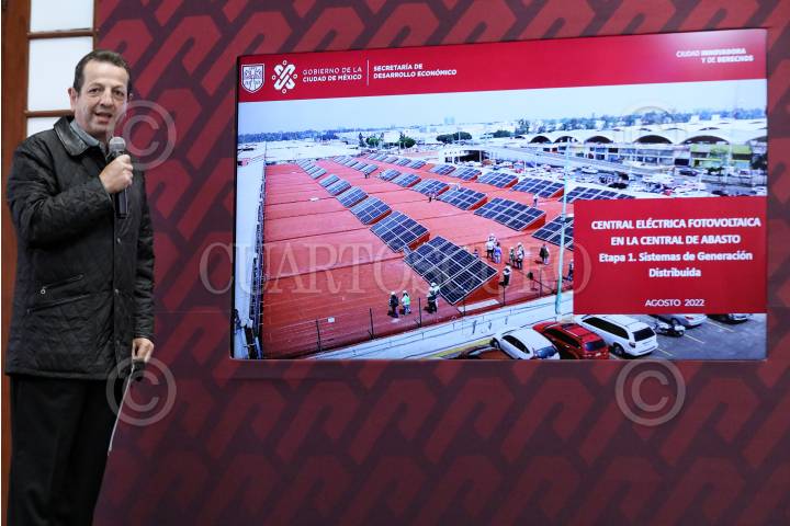 Claudia Sheinbaum y Fadlala Akabani, presentaron los avances de la Central Eléctrica Fotovoltaica en la Central de Abasto.