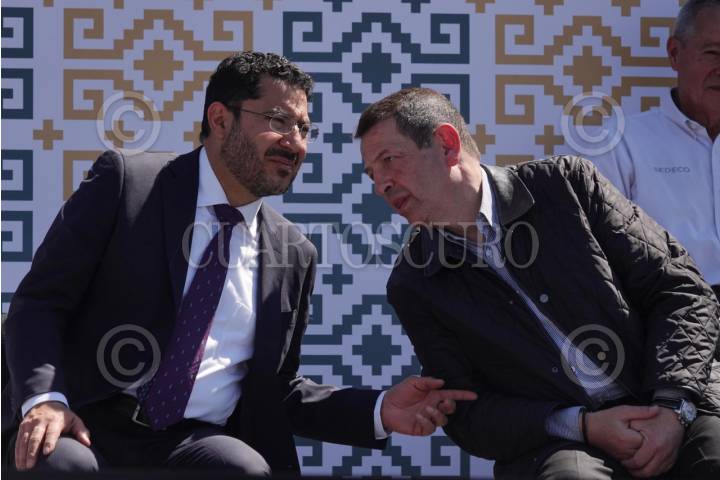 Clara Brugada, alcaldesa de Iztapalapa, y Fadlala Akabani, secretario de Desarrollo Económico, conversaron durante la inauguración de la Utopía Santa Cruz Meyehualco
